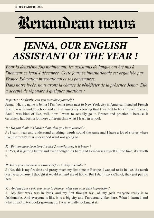 Jenna, our english assistant of the year !