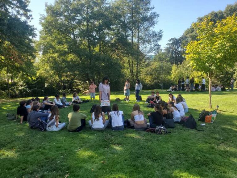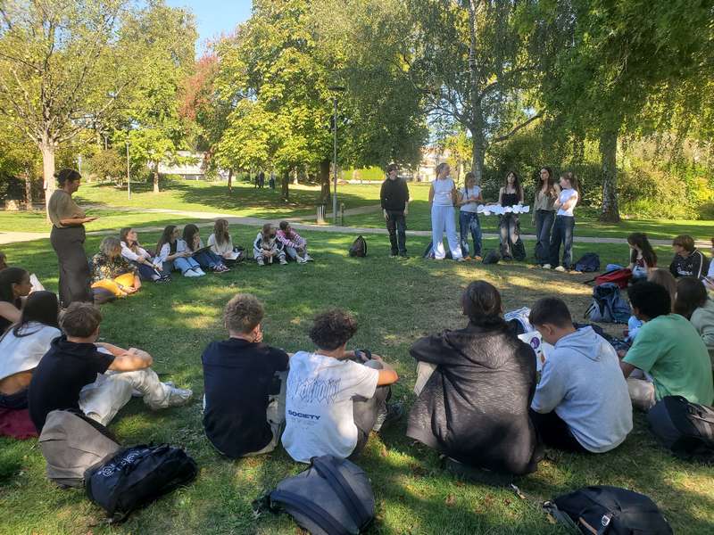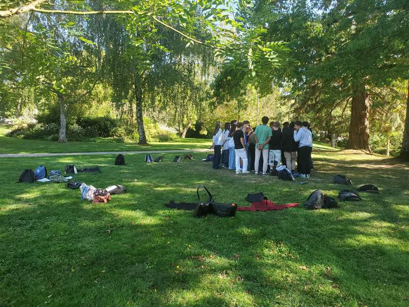 Le jeudi 18 septembre s’est tenue une journée d’intégration regroupant l’ensemble des élèves du lycée général et technologique en cursus d’arts appliqués. Étaient donc présentes les classes de Premières et de Terminales STD2A, ainsi que les élèves de secondes suivant l’option CCD. Du matin jusqu’en fin d’après-midi au Parc de Moine, les élèves ont pu se rencontrer sous forme de petits groupes inter-niveaux en répondant à des mini-défis créatifs préparés par les enseignant.es (dessin collectif, échantillonnage photographique de texture, traduction graphique de sons…).