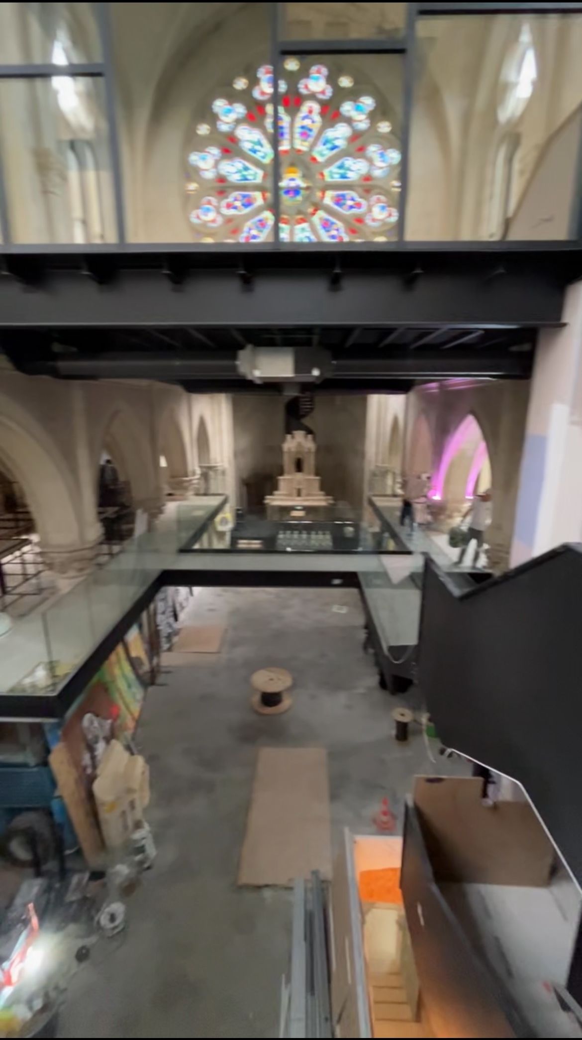 Nous avons dû nous équiper avec des chasubles, casques et chaussures de sécurité. La visite a débuté par le sous-sol. Ce dernier n’existait pas à l’origine, ce sont 2 mini-pelles qui ont creusé et évacué sous la chapelle pour une quantité d’une soixantaine de camions.