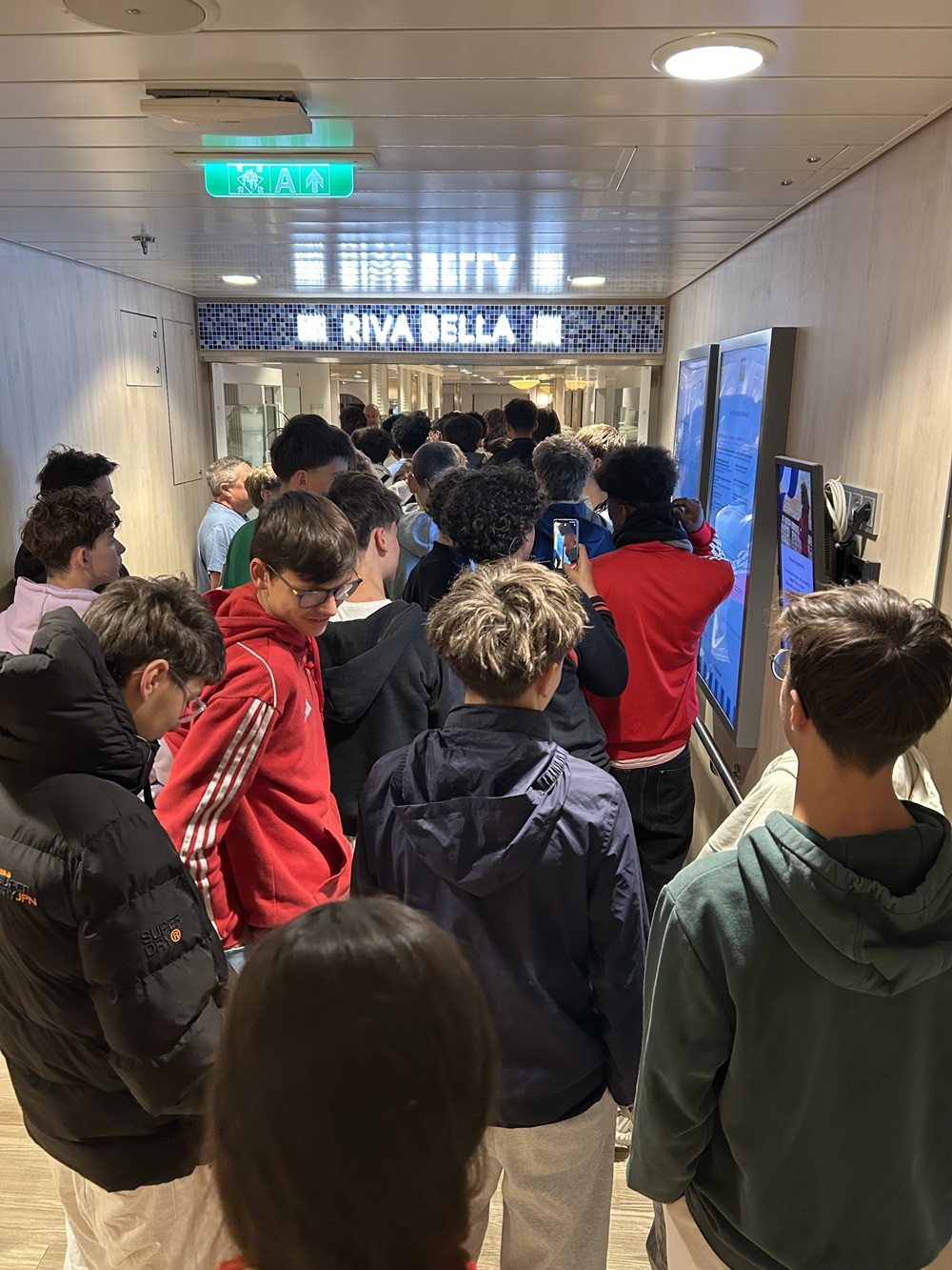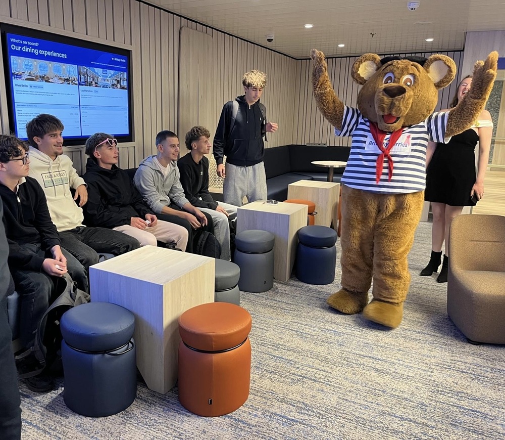 Embarquement à Caen et arrivée sur le Guillaume de Normandie accueilli par Pierre the bear.